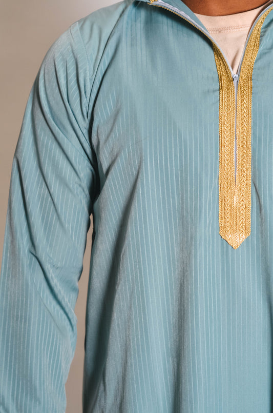 Ruffle Trim Cotton Jersey Prayer Dress with Attached Hijab