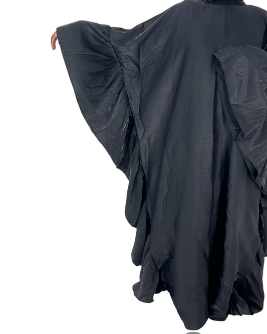 Black SilkFlutter Ruffle Butterfly Abaya