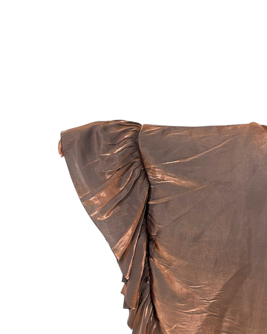 Bronze SilkFlutter Ruffle Butterfly Abaya
