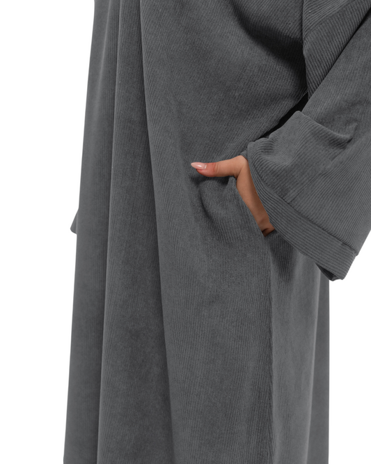 Curvy Grey Corduroy Comfort Abaya